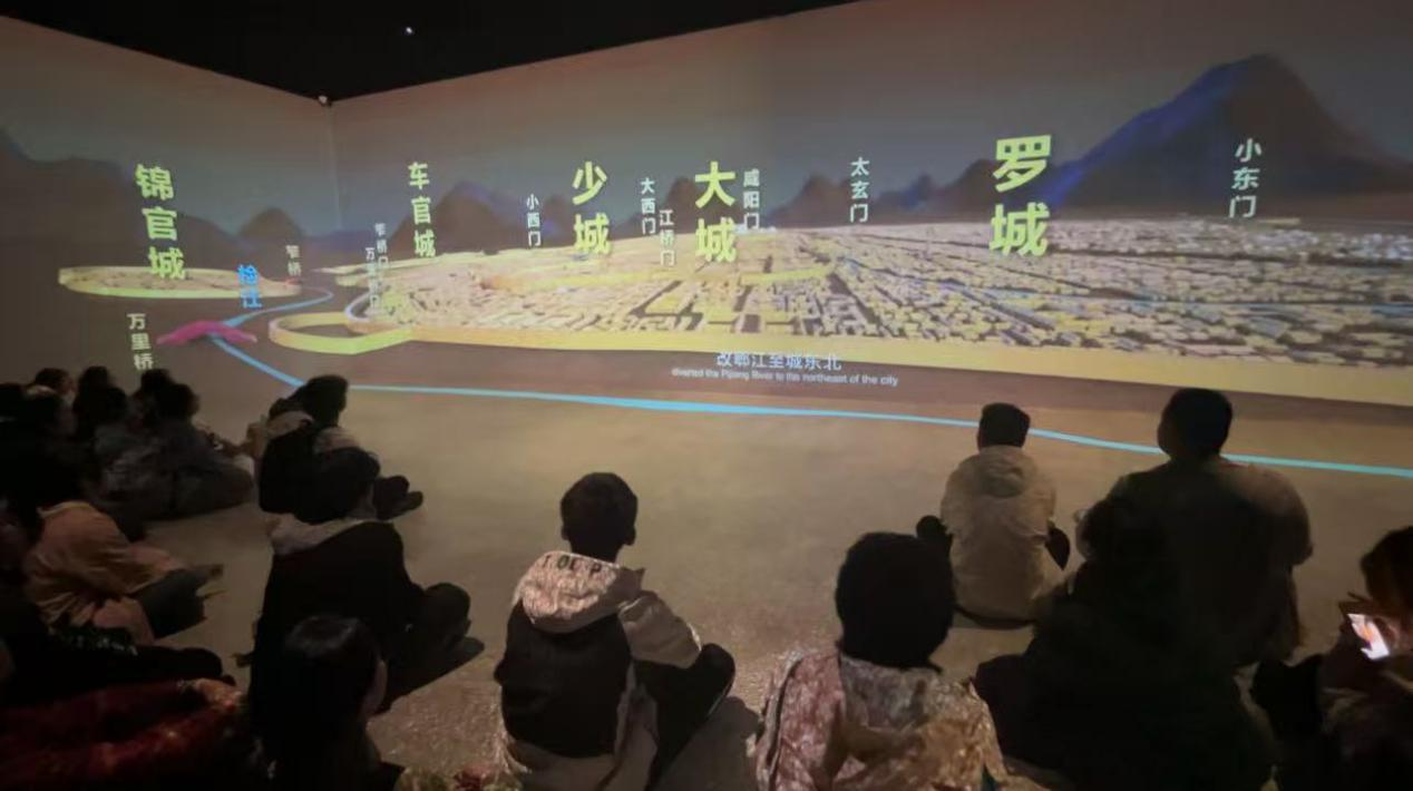师生们跟着讲解员借助全息投影技术,回溯巴蜀大地的地理变迁与文明脉络。从“蚕丛及鱼凫”的古蜀传说,到宋代“交子印记”的商业智慧;从数字复原的古蜀文物,到现代成都的城市规划;从当下的文化传承实践,到未来的巴蜀文明发展蓝图。沉浸式的体验让师生深刻理解“城市是文化的载体,文化是城市的灵魂”,也让传承不再局限于校园,而是延伸到更广阔的城市历史语境中,为青年搭建起“立足校园、放眼巴蜀”的文化视野。