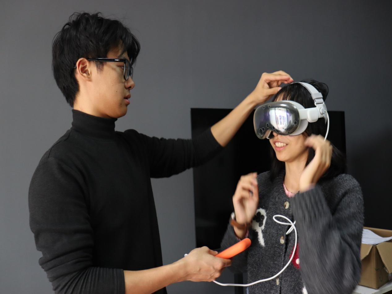 空间计算与人工智能工坊负责人帮助同学体验VR