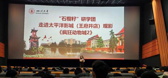 为深入学习贯彻习近平总书记关于加强和改善民族工作的重要思想,铸牢中华民族共同体意识,1月22日下午,我校“石榴籽”研学团组织200余名师生开展《疯狂动物城2》集体观影活动。此次观影活动由太平洋影城(王府井店)免费提供。
