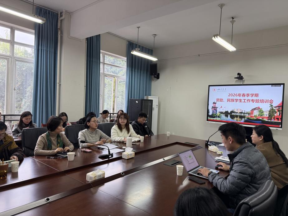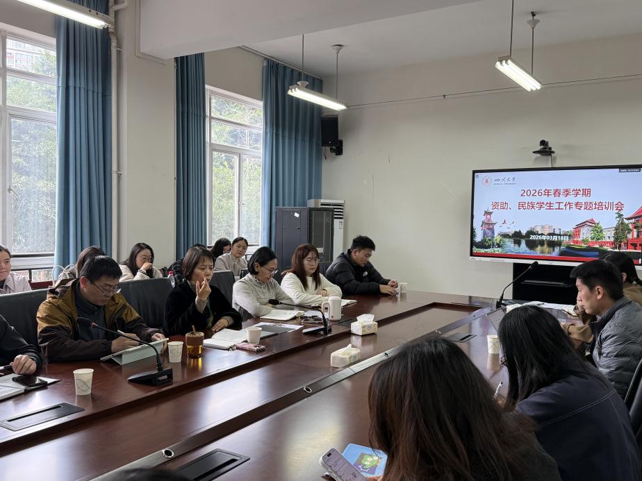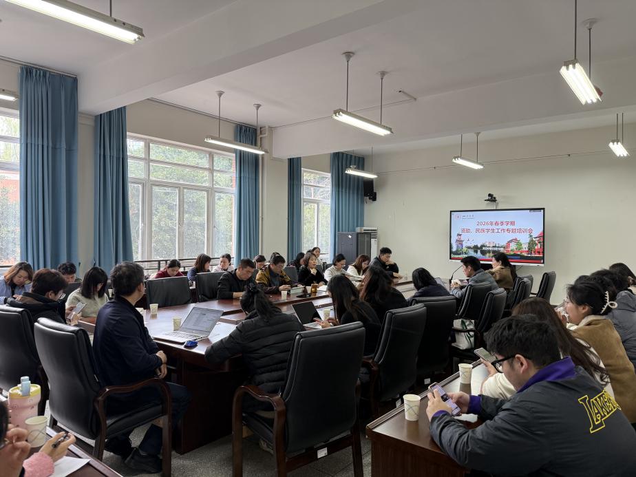 为深入贯彻落实国家资助政策和新时代党的民族工作方针,锚定立德树人根本任务,统筹推进我校资助和民族学生工作高质量发展, 3月18日,学工部在望江校区文华活动中心201会议室召开2026年春季学期资助、民族学生工作专题培训会议。各学院资助专职老师、学生资助中心和民族学生事务办全体老师参加了会议。