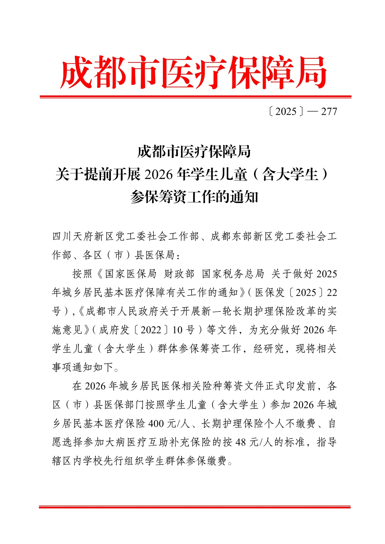 附件:《关于提前开展2026年学生儿童(含大学生)参保筹资工作的通知》〔2025--277号〕