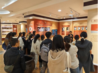 在讲解员的引导下,同学们首先了解了校史展览馆的整体布局与展陈特色,随后进行了有序参观。四川大学校史展览馆作为学校百年文脉与红色记忆的忠实记录者,通过珍贵实物、历史照片、场景复原及多媒体互动展项,系统呈现了学校自1896年创办以来的光辉历程。