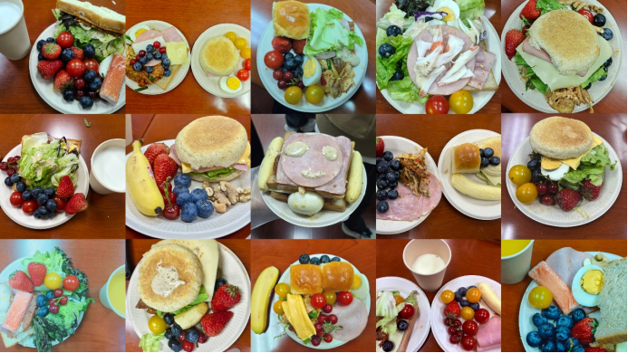 活动伊始,华西公共卫生学院江姐班班长向到场同学讲解营养与食品卫生的相关知识,如合理膳食的标准与重要性、科学配餐知识等;随后由同学们进行实践,自主设计一份“营养餐盘”。完成食材的挑选与摆盘后,大家对照膳食评分表进行自我营养评估,并围绕营养成分、热量构成、搭配合理性展开互评交流,在实践中深化对均衡营养的认知。活动还通过线上投票评选出了“最健康营养奖”“最治愈搭配奖”,现场氛围热烈有序。活动剩余的食材由同学们有序分食,全程践行光盘行动、杜绝餐饮浪费。