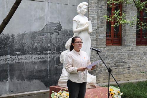 接着,化学学院江姐班班长江戎蓉发言,表达了新时代青年定要接过英雄的接力棒,奏响奋进乐章的决心。随后,在场的师生依次走到江姐塑像前敬献鲜花,深切缅怀为国家独立和民族解放牺牲宝贵生命的革命先烈们,表达了川大师生弘扬红色精神、践行时代使命的决心。纪念活动结束后,四川大学百川青年学生宣讲团成员张笑然、罗小虎同学为大家讲述川大英烈王建昌、毛英才的革命事迹,号召全体川大人学习革命先辈崇高精神,争做又红又专时代新人。同学们在江姐纪念馆讲解员、江姐班学生唐梓桓带领大家参观了江姐纪念馆,再次学习江姐的革命事迹。