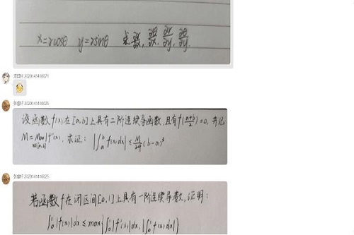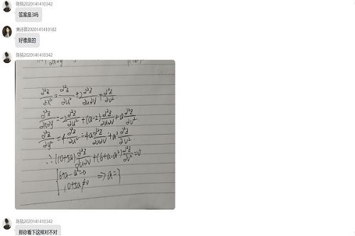 活动现场,氛围热烈。针对同学们普遍感觉难度的高等数学、线性代数、理论力学、大学物理、C语言等科目,志愿者与同学们在线积极讨论知识要点和重要考点。同时,志愿者还按组分工,做好在线问答活动秩序的维持,以及在线演算解答过程的展示。对于某些存疑的解题方法和“非标”答案,大家集思广益、建言献策,在探讨中明辨思路、获取灵感、共同进步。