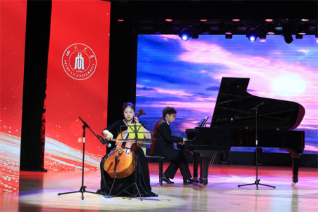 学院辅导员团队精心改编演绎歌舞《爱你》,表达对学生炽热真挚的关爱。学生盛典在《我爱你中国》的歌声中落下帷幕。