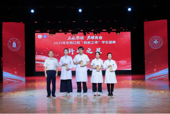 本次“启航之夜”学生盛典以“五航引领,荣耀青春”为主题,融合颁奖、分享和节目等环节,全方位展现华西口腔学子昂扬向上、锐意进取的精神风貌。