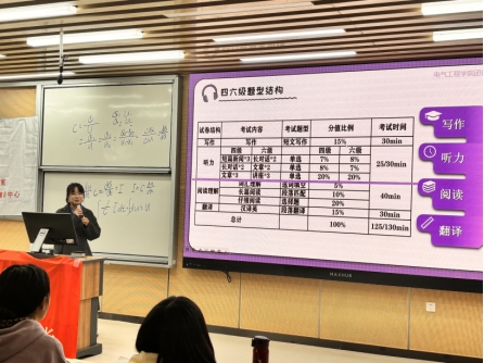 在英语四六级备考中,写作与翻译是同学们容易失分的薄弱板块。英语组的王语婷、吴佩晔、杨筹稀、范雨菲、朱际帆五位小导师针对这两大题型分享备考经验。在写作方面,小导师们讲解了议论文与应用文的写作要点,并通过真题剖析文章结构与语言表达,鼓励同学们高效利用真题展开针对性训练,锻炼自己准确审题与快速构思的能力。在翻译部分,小导师强调要多积累、勤总结、备考过程中善用AI工具辅助学习。