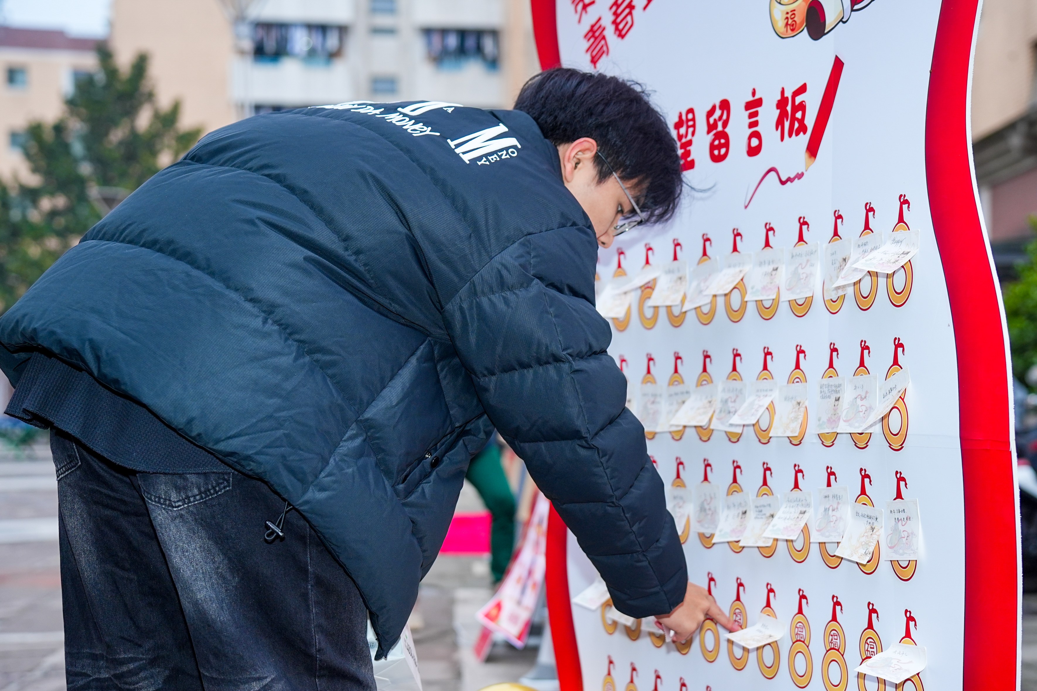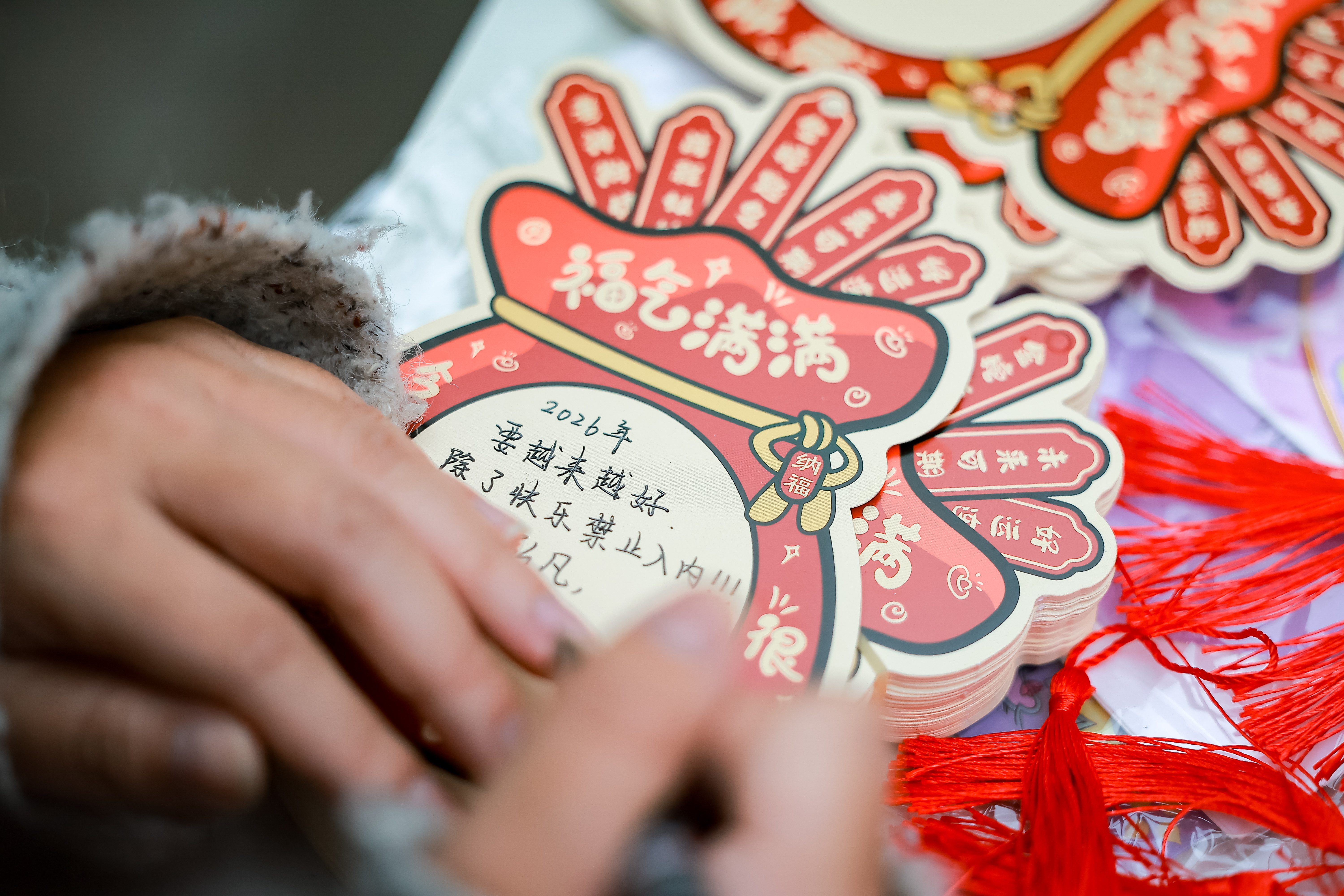 新年墙上贴心愿,福袋纳期许