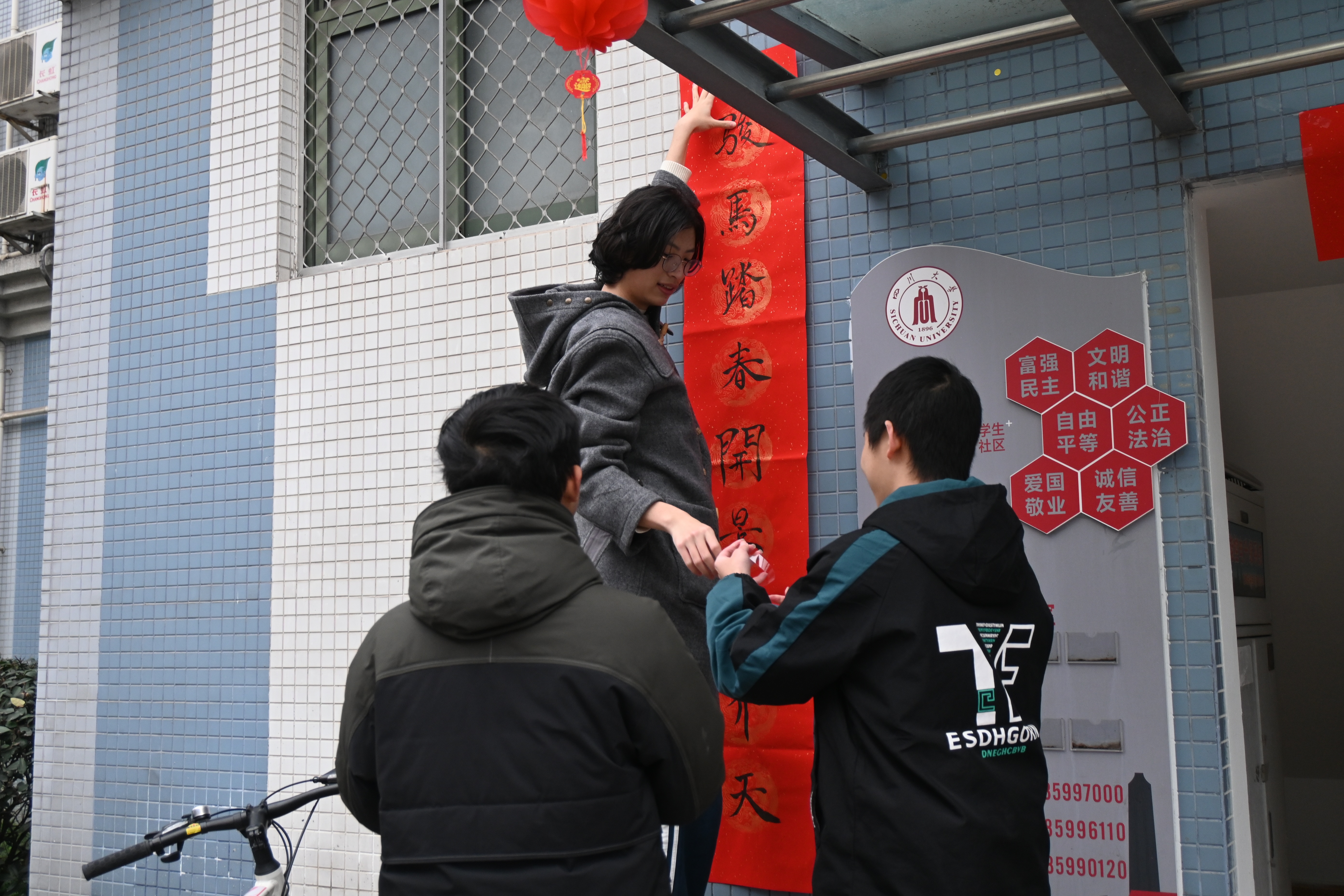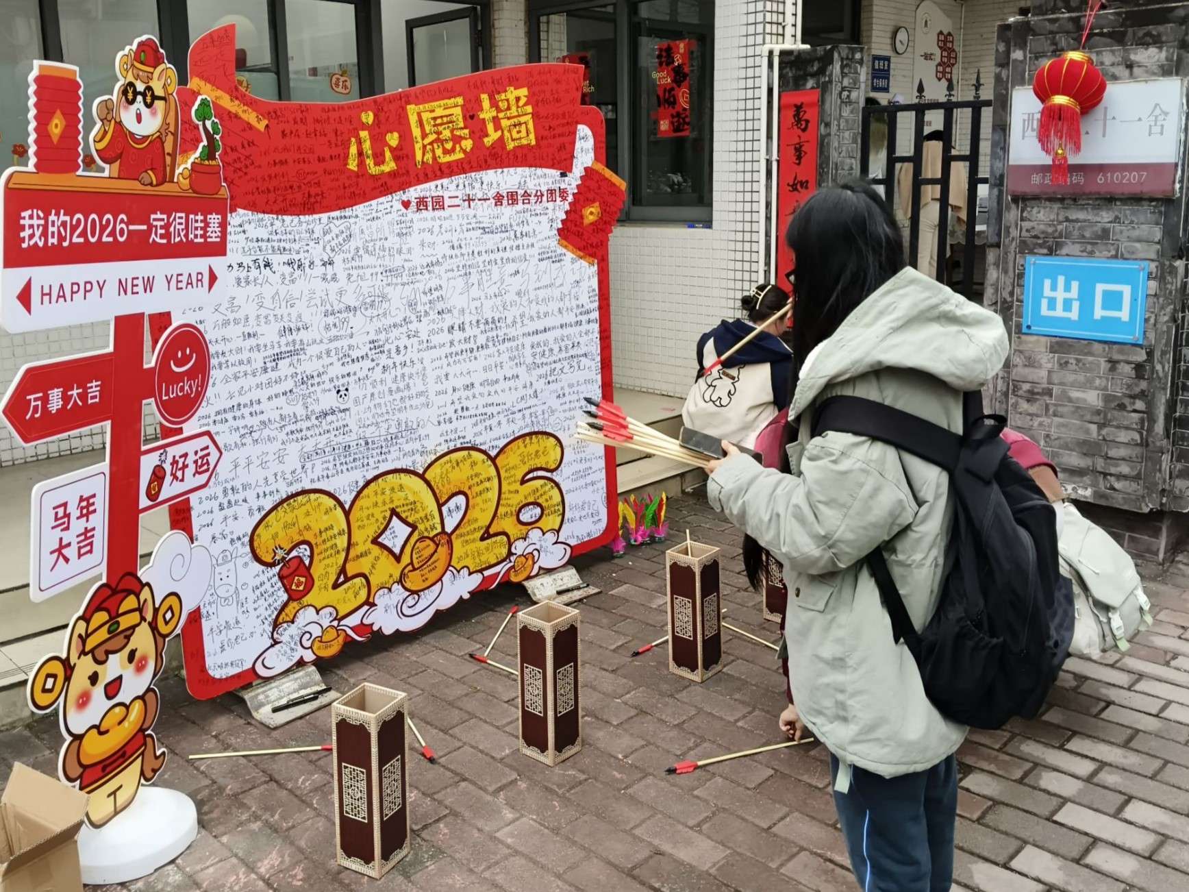 在学生社区迎新年活动中,我体验了拓印、投壶、踢毽等传统文化项目,和同学们一起写下了新年期许,也在欢声笑语中迎接新的一年。我衷心祝愿全体川大师生新的一年平安喜乐、万事顺意,更祝福我们的川大在130周年的新征程上,赓续百年薪火,文脉弦歌不辍,书写更加璀璨的新篇章!