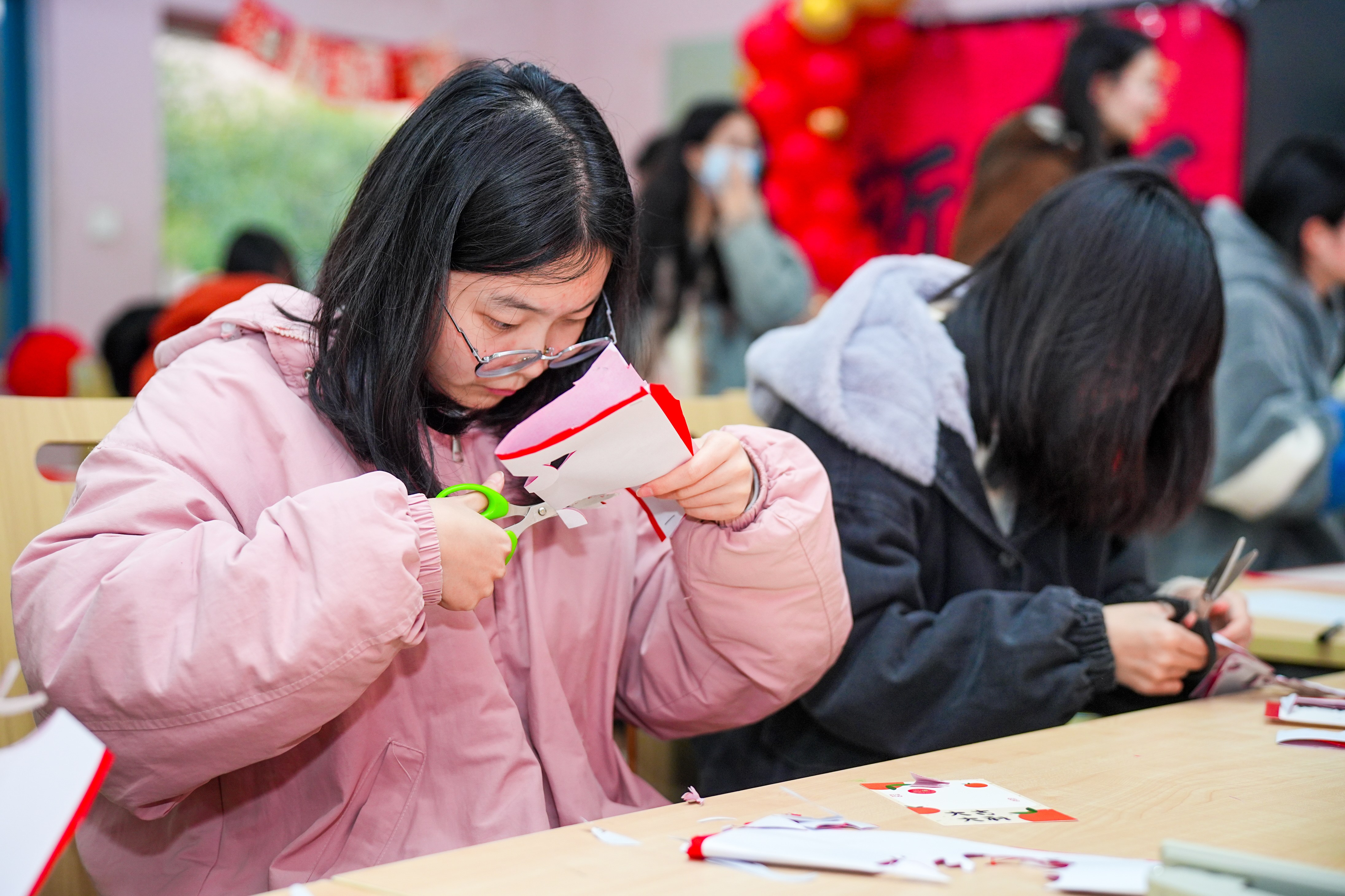 能够在“自家”活动室参与活动,别样亲切,格外放松。执毛笔、剪窗花、串福珠,手中好似握着母语的根脉,未来,也更期待自己用外语向世界传递这份中国浪漫。新年将至,愿我们这方小天地窗明几净,福气满盈;也愿我们每一位外语人,既能扎根本土雅韵,亦能融通世界新声。